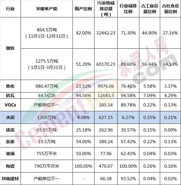 水泥行業(yè)(不含粉磨站)根據(jù)承擔(dān)居民供暖、協(xié)同處置城市垃圾或危險(xiǎn)廢物及高速公路重點(diǎn)建設(shè)項(xiàng)目等保民生任務(wù)量核定最大允許生產(chǎn)負(fù)荷外,其余企業(yè)錯峰期間全部停產(chǎn),行業(yè)限產(chǎn)比例4.08%。
