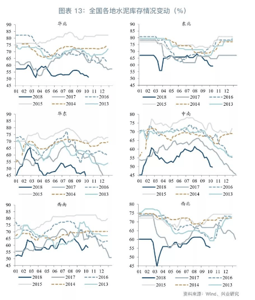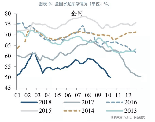 后市展望:本月固定資產(chǎn)投資有企穩(wěn)跡象,基建投資持續(xù)下滑,但房地產(chǎn)開發(fā)投資的增長較為穩(wěn)定,考慮到政府在基建投資的發(fā)力,財(cái)政政策和貨幣政策持續(xù)寬松,下游地產(chǎn)和基建企業(yè)的資金寬松可期,預(yù)計(jì)基建投資復(fù)蘇可期。而且從短期來看,10月下旬全國多數(shù)地區(qū)適宜開工,水泥市場將處于旺季階段。但供給方面近期環(huán)保略有放松,日前有京津冀地區(qū)傳達(dá)了不在劃定重工業(yè)限產(chǎn)比例的通知,環(huán)保端改變“一刀切”,但壓力仍在,行業(yè)自律錯(cuò)峰生產(chǎn)力度仍較大。因此整體看,短期內(nèi)水泥高景氣度仍然持續(xù),但中期內(nèi)可能承壓。