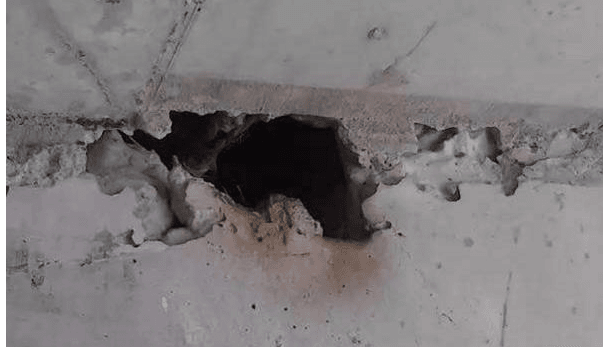 混凝土內(nèi)部主筋、副筋或箍筋局裸露在結(jié)構(gòu)構(gòu)件表面。