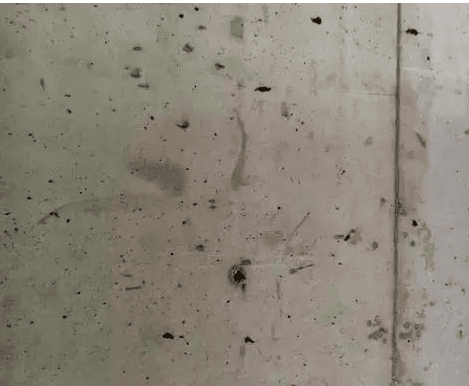 混凝土局部表面出現(xiàn)缺漿和許多小凹坑、麻點(diǎn),形成租糙面,但無(wú)鋼筋外露現(xiàn)象。