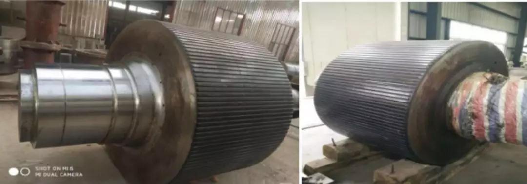 新材料合金輥在制作過程中,采用離心澆注并融入稀有金屬,一次成型。條紋采用專用設(shè)備開槽成型,其優(yōu)點(diǎn)是,相比于傳統(tǒng)輥面其輥間咬合物料更好,物料不打滑,帶料能力更強(qiáng),輥壓機(jī)運(yùn)行效率更高。如圖所示: