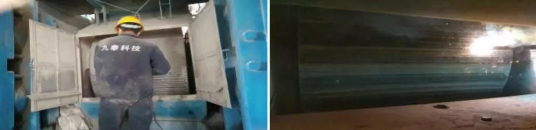 三、新材料合金輥優(yōu)秀的維護(hù)性。焊接時(shí)間短、費(fèi)用低,無需打磨及升溫等工序,只需將輥面清掃干凈即可。在線堆焊一字條紋,堆焊一字條紋使用專用焊絲和焊條與輥套材質(zhì)相符,焊接使輥?zhàn)颖3衷汲叽?。與傳統(tǒng)焊接輥相比耗材費(fèi)用節(jié)約 50~80%,焊接時(shí)間為 3~5 天。