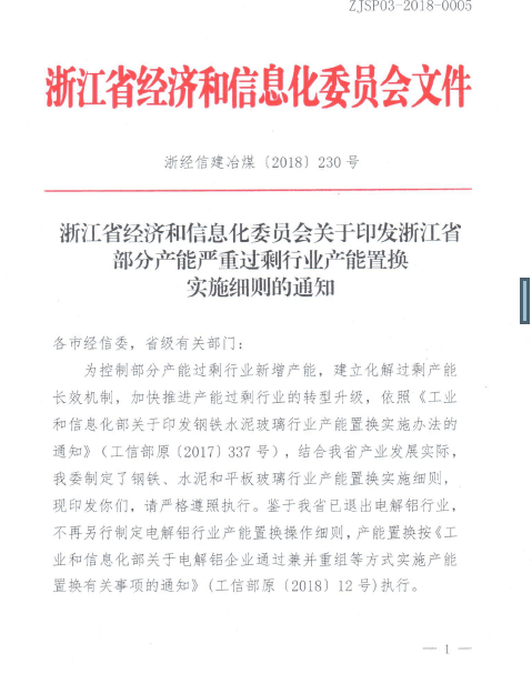 浙江省水泥玻璃行業(yè)產(chǎn)能置換實(shí)施細(xì)則