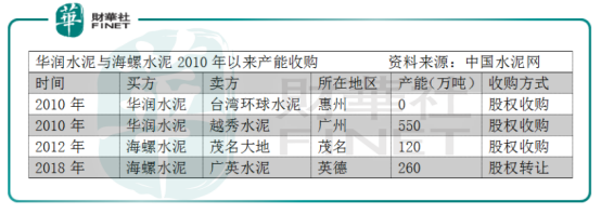 2017年,廣東水泥企業(yè)的市占率排在前五名的企業(yè)分別是華潤(18.05%)、海螺(14.76%)、臺泥(12.24%)、塔牌(8.63%)和中材(7.06%)。作為華南地區(qū)最大的水泥、熟料及混凝土生產(chǎn)商,華潤水泥的競爭力先是基于其在廣東地區(qū)扎根多年的經(jīng)營優(yōu)勢。回溯華潤水泥組建初期,它曾收購東莞水泥、東莞混凝土及深圳混凝土等資產(chǎn)的100%股權(quán)來充實自身,這些都是自上世紀90年代開始就投產(chǎn)的資深水泥企業(yè)。華潤水泥上市之后,又經(jīng)過股權(quán)收購的方式來進一步擴大在廣東本土的水泥資產(chǎn)。