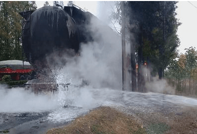 途中消防員迅速與報警人取得聯(lián)系,了解現(xiàn)場具體情況。經(jīng)了解,是從山東開往睢寧方向一輛運輸水泥的罐車著火。中隊抵達現(xiàn)場,迅速鋪設(shè)水帶出水滅火,經(jīng)過15分鐘左右的撲救明火被撲滅。據(jù)車主了解,是由于車子在行駛過程中爆胎引發(fā)起火的,主要燃燒部位為后輪胎。事故所幸沒有造成人員被困和受傷。