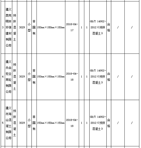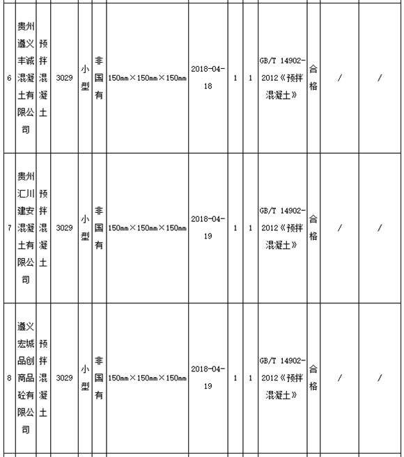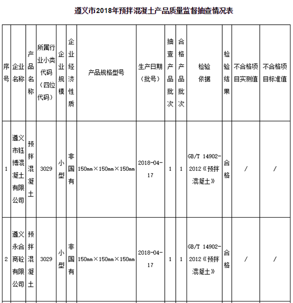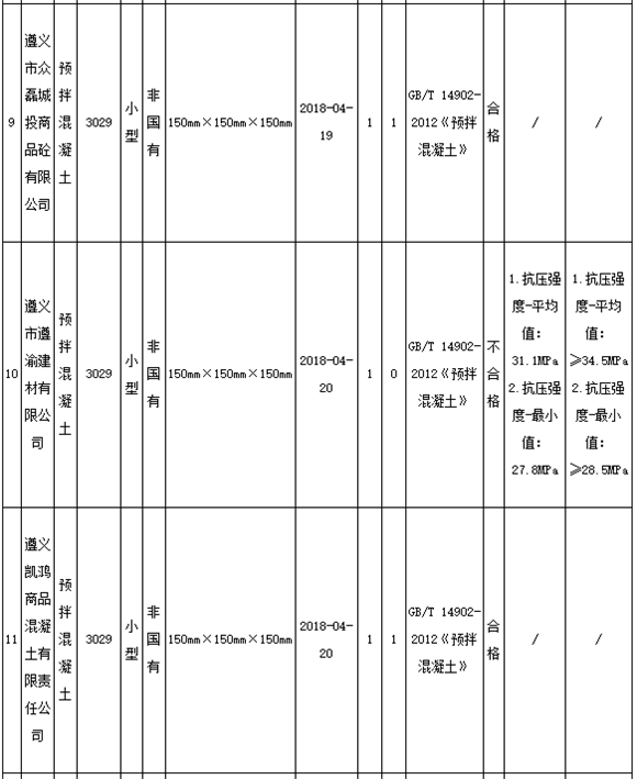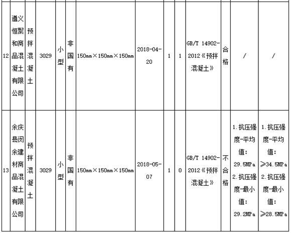 11月8日,貴州遵義市市場監(jiān)管局官網(wǎng)發(fā)布通告稱,為進一步加大遵義市工業(yè)產(chǎn)品質(zhì)量監(jiān)督力度,確保產(chǎn)品質(zhì)量安全,近期組織對全市13家生產(chǎn)預拌混凝土企業(yè)共13個批次產(chǎn)品進行抽檢。13家企業(yè)11批次產(chǎn)品合格,2批次產(chǎn)品不合格,合格率為84.6%。