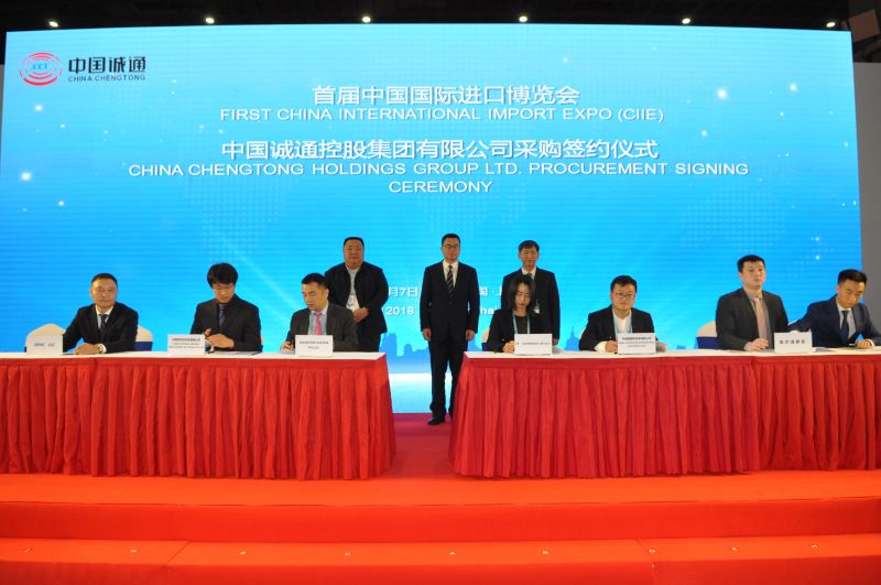 11月7日,中央企業(yè)交易團(tuán)中國(guó)誠(chéng)通交易分團(tuán)在首屆中國(guó)國(guó)際進(jìn)口博覽會(huì)上舉辦集體簽約儀式。中國(guó)誠(chéng)通副總裁童來(lái)明出席并見證簽約。