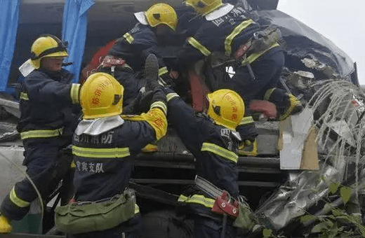 事故發(fā)生后,宜賓江安縣消防救援力量出動(dòng)14名消防員到場(chǎng)施救。事故現(xiàn)場(chǎng)一輛渝A牌照客車撞上應(yīng)急車道上的水泥罐車,客車右前方一片狼藉,撞碎的車輛零部件下有三人被死死卡住。遺憾的是,經(jīng)現(xiàn)場(chǎng)救護(hù)人員初步診斷三名被困者已身亡。
