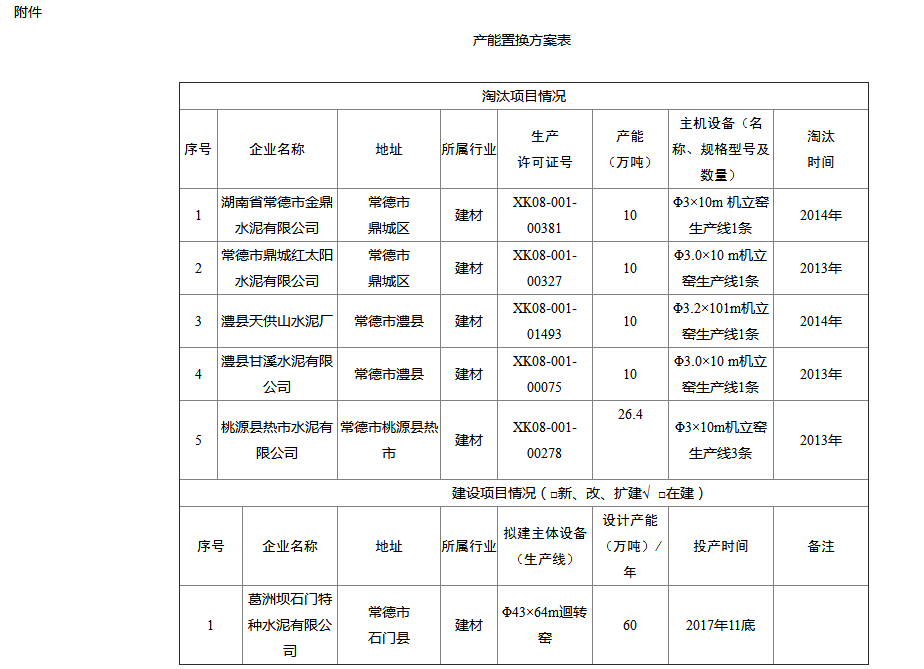 注:2014年邵陽市制定該項(xiàng)目產(chǎn)能置換方案時(shí),國(guó)家尚未出臺(tái)具體的產(chǎn)能置換辦法,即《工業(yè)和信息化部關(guān)于做好部分產(chǎn)能嚴(yán)重過剩行業(yè)產(chǎn)能置換工作的通知》(工信部產(chǎn)業(yè)〔2014〕296號(hào))和《工業(yè)和信息化部關(guān)于印發(fā)部分產(chǎn)能嚴(yán)重過剩行業(yè)產(chǎn)能置換實(shí)施辦法的通知》(工信部產(chǎn)業(yè)〔2015〕127號(hào)),故按《國(guó)務(wù)院關(guān)于化解產(chǎn)能嚴(yán)重過剩矛盾的指導(dǎo)意見》(國(guó)發(fā)〔2013〕41號(hào))精神進(jìn)行方案制定與確認(rèn)。