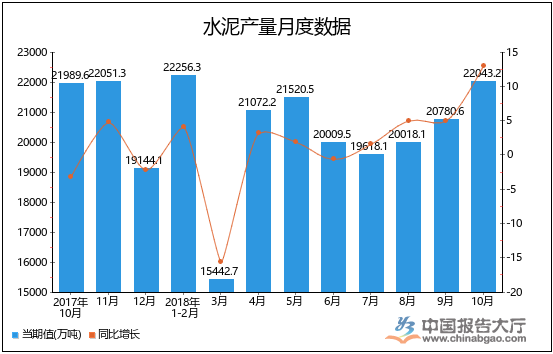 以上就是2018年1-10月全國水泥產(chǎn)量統(tǒng)計(jì),數(shù)據(jù)來源于國家統(tǒng)計(jì)局及中國報(bào)告大廳數(shù)據(jù)中心整理發(fā)布,僅供參考。