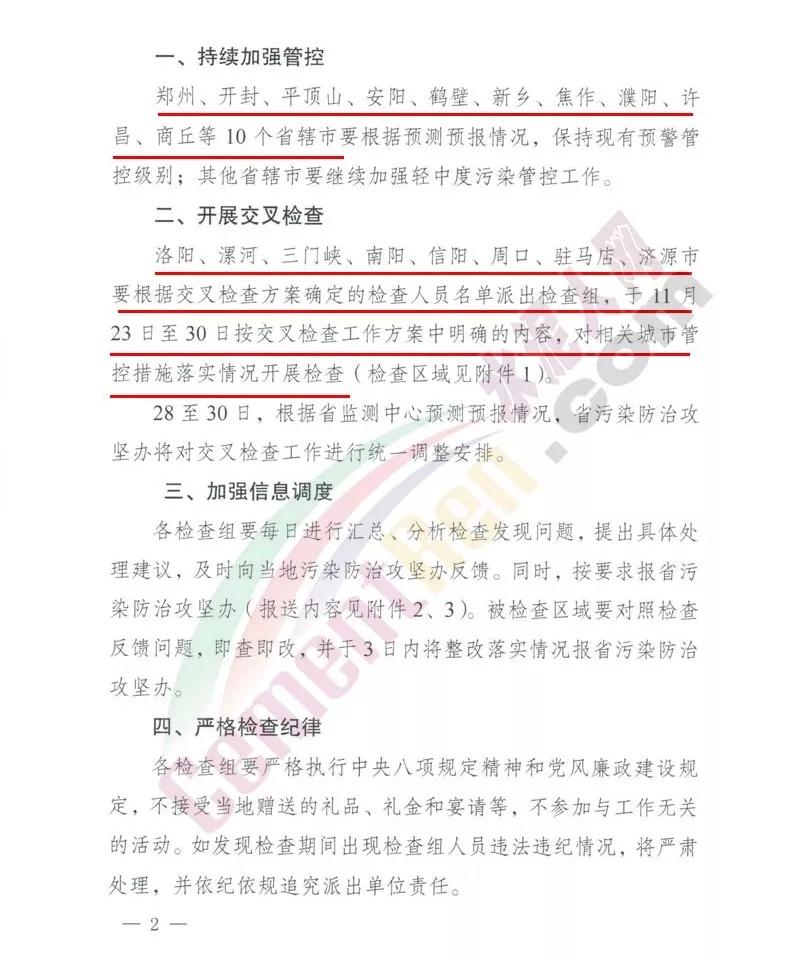洛陽、漯河、三門峽、南陽、信陽、周口、駐馬店、濟(jì)源市要根據(jù)交叉檢查方案確定的檢查人員名單派出檢查組,于11月23日至30日按交叉檢查工作方案中明確的內(nèi)容,對相關(guān)城市管控措施落實(shí)情況開展檢查(檢查區(qū)域見附件1)。