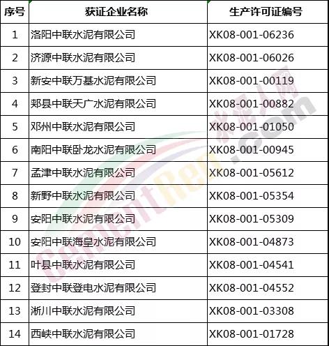 14家水泥企業(yè)名單