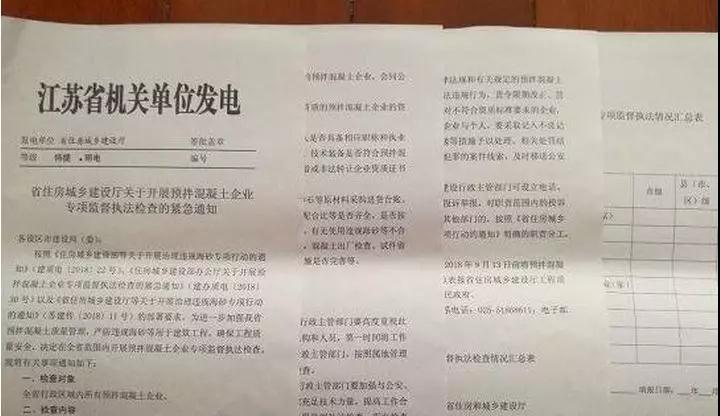 據(jù)了解,江蘇省住房城鄉(xiāng)建設(shè)廳一份落款時(shí)間為2018年8月31日關(guān)于“省住房城鄉(xiāng)建設(shè)廳關(guān)于開(kāi)展預(yù)拌混凝土企業(yè)專項(xiàng)監(jiān)督執(zhí)法檢查的緊急通知”一文中明確要求,在全省行政區(qū)域內(nèi)全面清理整頓無(wú)預(yù)拌混凝土企業(yè)專業(yè)承包資質(zhì)的預(yù)拌混凝土企業(yè)生產(chǎn)銷(xiāo)售行為。對(duì)無(wú)資質(zhì)生產(chǎn)經(jīng)營(yíng)的預(yù)拌混凝土企業(yè),會(huì)同公安、市場(chǎng)(工商)等部門(mén)堅(jiān)決予以取締。檢查時(shí)間為2018年9月1日至9月10日,各設(shè)區(qū)市建設(shè)行政主管部門(mén)于2018年9月13日前將預(yù)拌混凝土企業(yè)專項(xiàng)監(jiān)督執(zhí)法檢查情況匯總表報(bào)省住房城鄉(xiāng)建設(shè)廳工程質(zhì)量安全監(jiān)管處,并抄送各設(shè)區(qū)市人民政府。