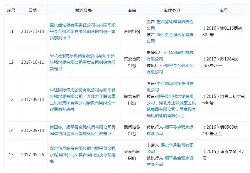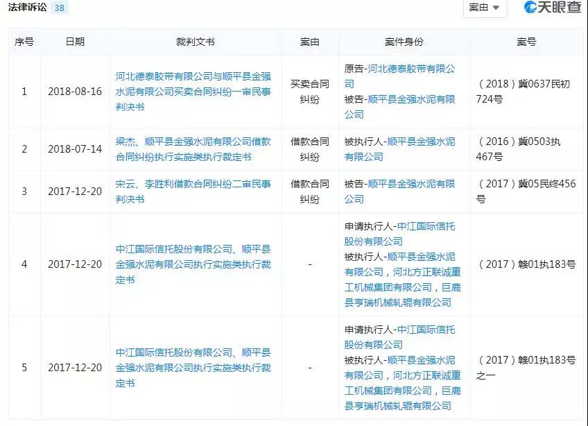 金強水泥投產(chǎn)后,似乎其發(fā)展之路并不平坦,曲折坎坷,先是2015年爆出股權轉(zhuǎn)讓京蘭水泥,后是法律訴訟案件不斷,官司纏身!相關資料顯示僅2017-2018就涉及15起法律訴訟。