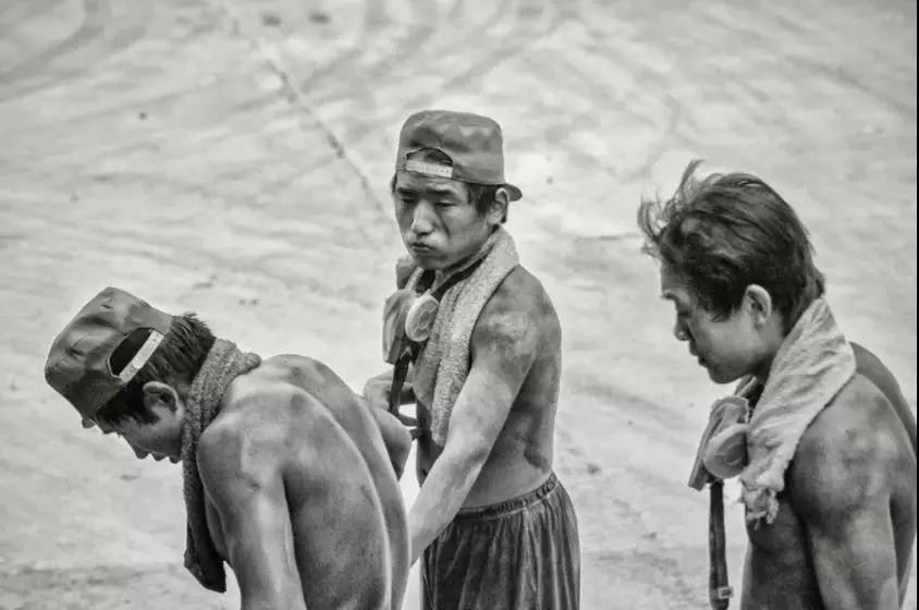 ▲2005年8月,從一個個裸身上的粉塵和口鼻上的防護罩,你就會想象到勞動強度和環(huán)境對他們的侵蝕。