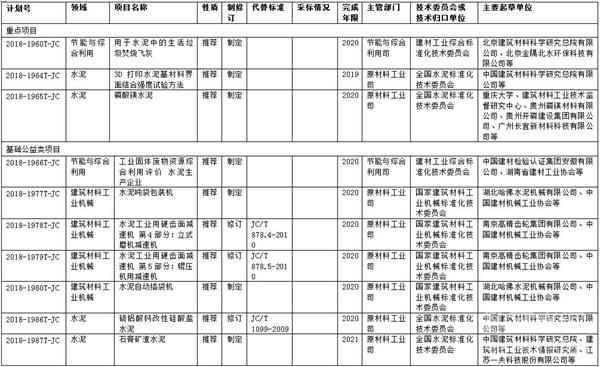 近期,工業(yè)和信息化部辦公廳關于印發(fā)2018年第四批行業(yè)標準制修訂計劃的通知(以下簡稱“標準”)中包含了十項水泥相關標準,分別是:用于水泥中的生活垃圾焚燒飛灰、3D打印水泥基材料界面結合強度試驗方法、磷酸鎂水泥、工業(yè)固體廢物資源綜合利用評價水泥生產企業(yè)、水泥噸袋包裝機、水泥工業(yè)用硬齒面減速機第4部分:立式磨機減速機、水泥工業(yè)用硬齒面減速機第5部分:輥壓機用減速機、水泥自動插袋機、硫鋁酸鈣改性硅酸鹽水泥、石膏礦渣水泥。