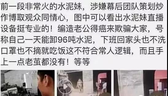 直播相信大家每個人都看過,也有很多的網紅都是靠著直播平臺來賺錢的。同時直播平臺也火了一大批人,我們今天說的就是這樣一個團隊,靠著直播賣慘來博取觀眾的眼球,從而攫取流量來獲得利益。相信大家都知道水泥妹這個人,他們這個團隊就是靠拍攝一個瘦弱的女子在工地上抬水泥來養(yǎng)活家庭,從而博取關注。