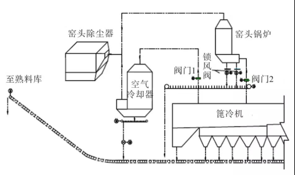 回灰拉鏈機(jī)使用部位及配置情況見表1,窯頭收塵及窯灰輸送工藝見圖1。