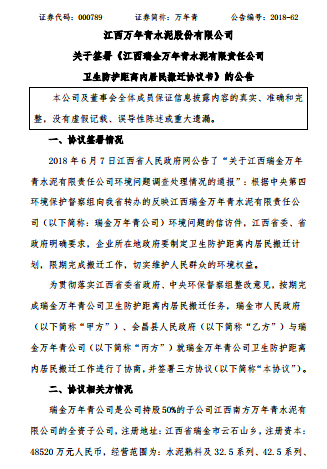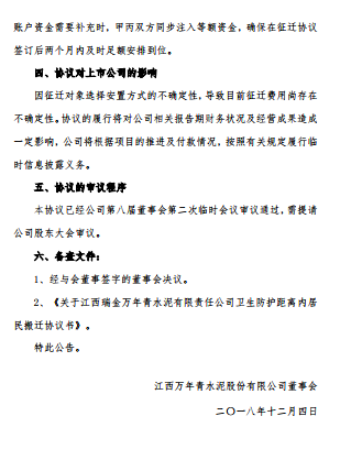 關于簽署《江西瑞金萬年青水泥有限責任公司衛(wèi)生防護距離內居民搬遷協(xié)議書》的公告