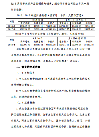 瑞金萬年青水泥防護距離內居民搬遷協(xié)議公告