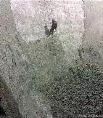 3. 清庫(kù)就是因?yàn)樗懒弦徊讲椒e累而來(lái),事實(shí)上在沒(méi)有徹底堵死的時(shí)候,我們的水泥庫(kù)都是嚴(yán)重帶病運(yùn)行的。等到必須清庫(kù)時(shí),無(wú)論是人工方式還是機(jī)器方式,減壓錐的存在反而變成了巨大的料路疏通障礙;因?yàn)榇罅克懒隙鄶?shù)處于板結(jié)硬化狀態(tài),清理下來(lái)的往往是流動(dòng)性極差的塊粉混合料,其疏通死角有時(shí)不得不靠人加以處理,如圖5所示,在高位堆積受力極不穩(wěn)定的庫(kù)內(nèi)環(huán)境,這正是誘發(fā)重大傷亡事故的原因所在。