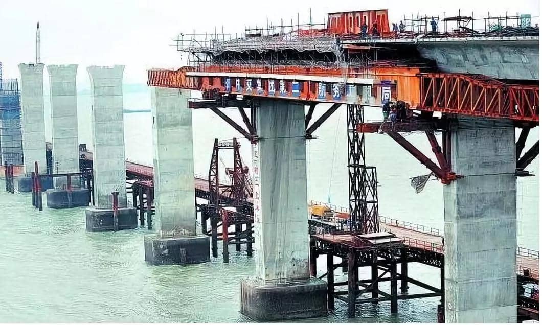 這座大橋最難的部分,也是也是部分深海的施工,所以在建造的時候,為了保證底部的質(zhì)量,我們將240噸的水泥傾瀉到海水當(dāng)中,為了保證最大的加固,我們在海底打入了上百根鋼柱,這些鋼柱加起來也有三十噸。