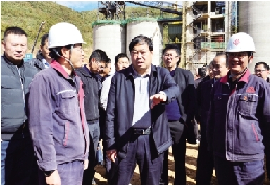 楊健在賓川縣紅塔滇西水泥股份有限公司認(rèn)真了解項(xiàng)目建設(shè)情況。