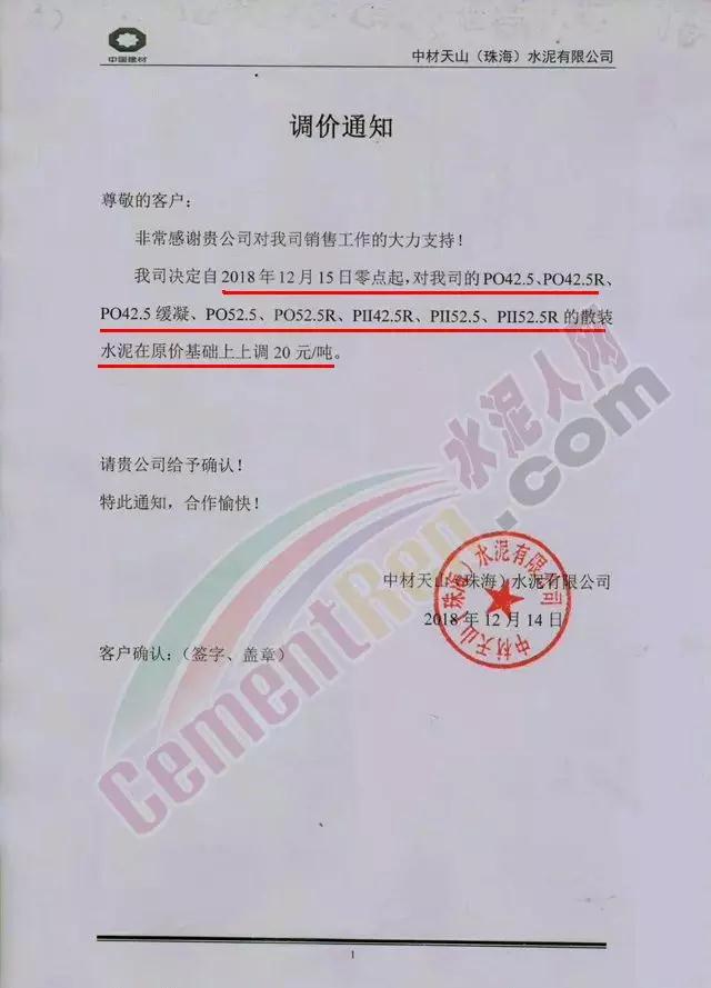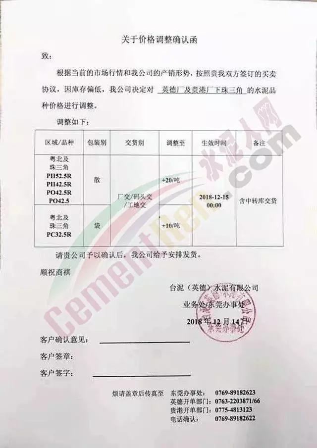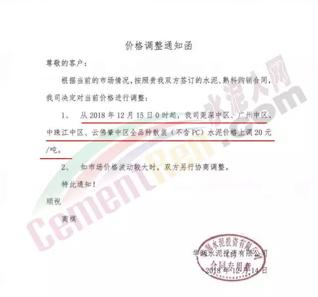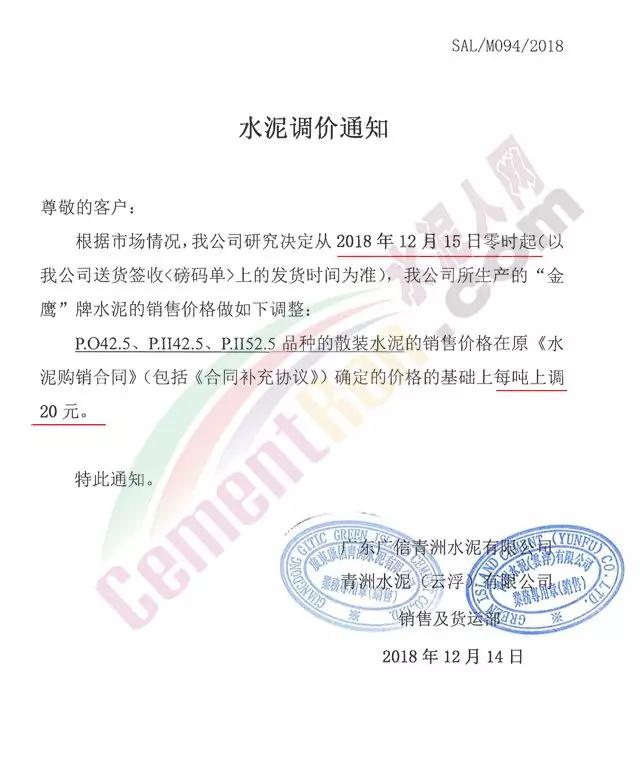 昨日珠三角區(qū)域水泥企業(yè)陸續(xù)發(fā)布通知稱(chēng)自今日(15日)起上調(diào)水泥價(jià)格,上調(diào)幅度20-30元/噸。調(diào)價(jià)通知稱(chēng)因熟料等原材料價(jià)格上漲,同時(shí)各企業(yè)庫(kù)存偏低,故上調(diào)水泥價(jià)格,通知原文如下: