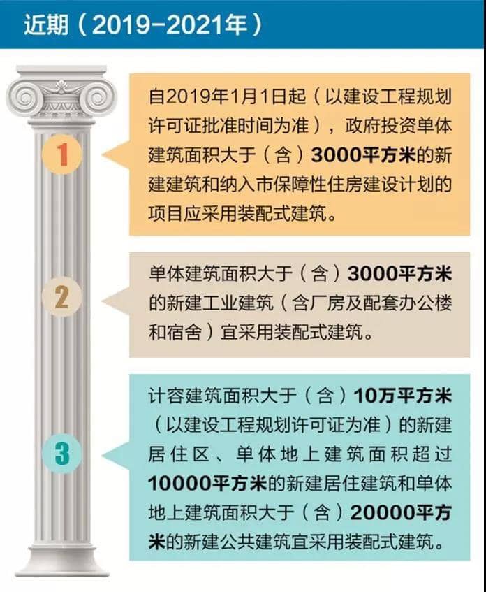 近年來(lái),黨中央、國(guó)務(wù)院和省委、省政府以及市委、市政府高度重視發(fā)展裝配式建筑。裝配式建筑的規(guī)劃自2015年以來(lái)密集出臺(tái),2015年末,住建部發(fā)布了《工業(yè)化建筑評(píng)價(jià)標(biāo)準(zhǔn)》;2016年2月,國(guó)務(wù)院印發(fā)了《中共中央 國(guó)務(wù)院關(guān)于進(jìn)一步加強(qiáng)城市規(guī)劃建設(shè)管理工作的若干意見(jiàn)》,明確提出:大力推廣裝配式建筑,建設(shè)國(guó)家級(jí)裝配式建筑生產(chǎn)基地。加大政策支持力度,力爭(zhēng)用10年左右時(shí)間,使裝配式建筑占新建建筑的比例達(dá)到30%;2016年9月27日國(guó)務(wù)院出臺(tái)《關(guān)于大力發(fā)展裝配式建筑的指導(dǎo)意見(jiàn)》(國(guó)辦發(fā)﹝2016﹞71號(hào)),對(duì)大力發(fā)展裝配式建筑和鋼結(jié)構(gòu)重點(diǎn)區(qū)域、未來(lái)裝配式建筑占比新建筑目標(biāo)、重點(diǎn)發(fā)展城市進(jìn)行了明確,該意見(jiàn)再次提出力爭(zhēng)用10年左右時(shí)間,使裝配式建筑占新建建筑的比例達(dá)到30%;2017年4月,廣東省人民政府辦公廳印發(fā)了《廣東省人民政府辦公廳關(guān)于大力發(fā)展裝配式建筑的實(shí)施意見(jiàn)》(粵府辦﹝2017﹞28號(hào))更加進(jìn)一步細(xì)化了廣東省裝配式發(fā)展的要求。我市處于珠三角城市群列,是重點(diǎn)推進(jìn)地區(qū),要求到2020年年底前,裝配式建筑占新建建筑面積比例達(dá)到15%以上。到2025年年底前,裝配式建筑占新建建筑面積比例達(dá)到35%以上;2017年12月,住建部發(fā)布了《裝配式建筑評(píng)價(jià)標(biāo)準(zhǔn)》,進(jìn)一步規(guī)范了裝配式建筑的評(píng)價(jià)。