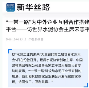 要想富,先修路。共建“一帶一路”,少不了水泥。然而,宋志平介紹說(shuō),在“一帶一路”的建設(shè)中,中國(guó)輸出的不僅是建材,而是從生產(chǎn)線、技術(shù)標(biāo)準(zhǔn)到實(shí)驗(yàn)室、大賣場(chǎng),再到物流、管理的全鏈條。