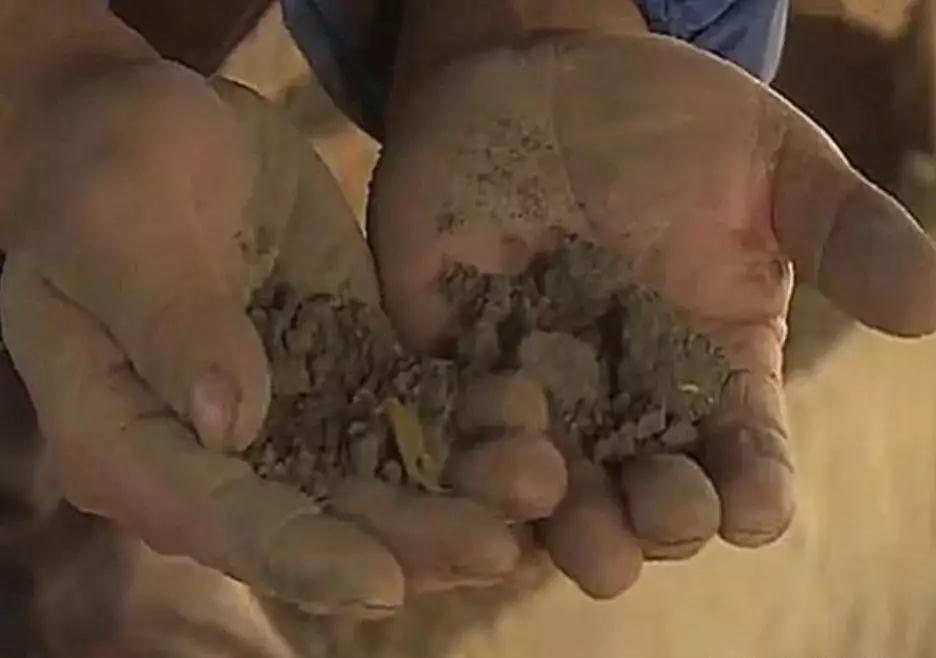 隨后,董大哥用錘子在自己的客廳房梁上砸下來幾塊混凝土,放在手里搓了搓,看到的是一團像沙子一樣的土渣。這一點讓董大哥懷疑問題出在水泥上。