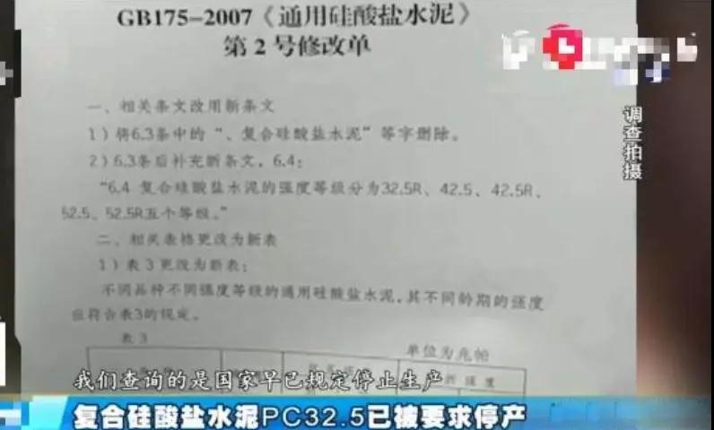 經(jīng)銷商將生產(chǎn)水泥的廠家地址告訴了董大哥,董大哥隨即趕到水泥廠一問究竟。面對記者的采訪,水泥廠的工作人員堅稱自己買的水泥屬于合格產(chǎn)品并向記者展示了存放在倉庫的產(chǎn)品,見到水泥后記者發(fā)現(xiàn)這里的水泥型號和董大哥家的基本一致,但是有一個細節(jié)讓記者發(fā)現(xiàn)了問題,就是產(chǎn)品的型號變成了“PC32.5R”,記者再一查詢得知,這一型號的水泥與董大哥家里的“PC32.5”并不一樣,董大哥家的早在2015年就已經(jīng)停產(chǎn),而現(xiàn)在的這個型號要到2019年12月份才會到期停產(chǎn)。因此,一番查詢下來董大哥家的房屋會出現(xiàn)問題,原因還在水泥上。