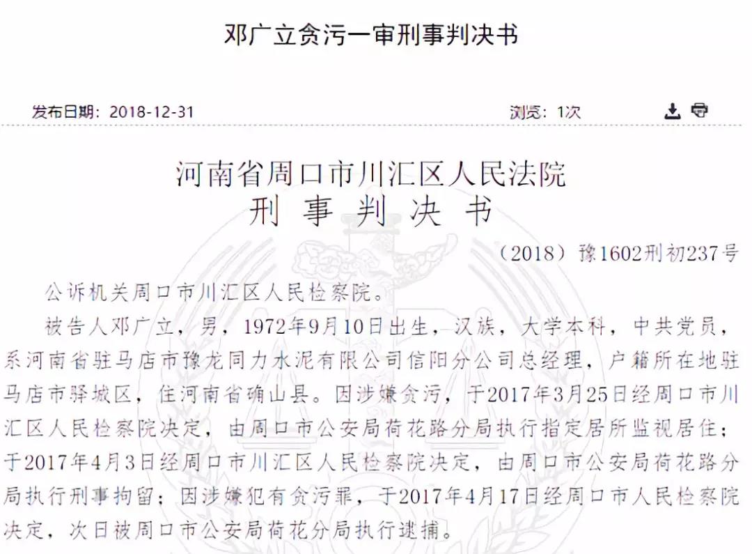 2017年3月25日,鄧廣立因涉嫌貪污,被指定居所監(jiān)視居住,2017年4月3日被刑事拘留。鄧廣立犯貪污罪,判處有期徒刑一年八個(gè)月,并處罰金人民幣十五萬(wàn)元。非法所得12.78萬(wàn)元應(yīng)當(dāng)予以追繳,上繳國(guó)庫(kù)。