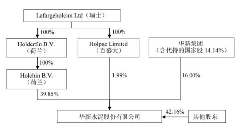 截至2018年9月30日,拉法基豪瑞集團旗下全資子公司Holchin.B.V.在公司的持股比例為 39.85%,其與一致行動人合計持股41.84%。以下為公司債券跟蹤評級報告(2018)中披露的股權(quán)結(jié)構(gòu)圖: