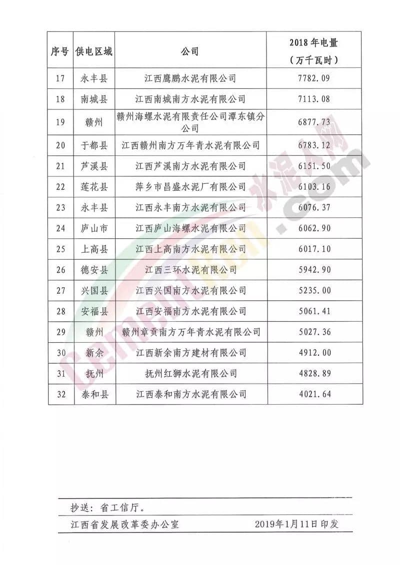 附:2018年用電量4000萬千瓦時以上的水泥企業(yè)名單