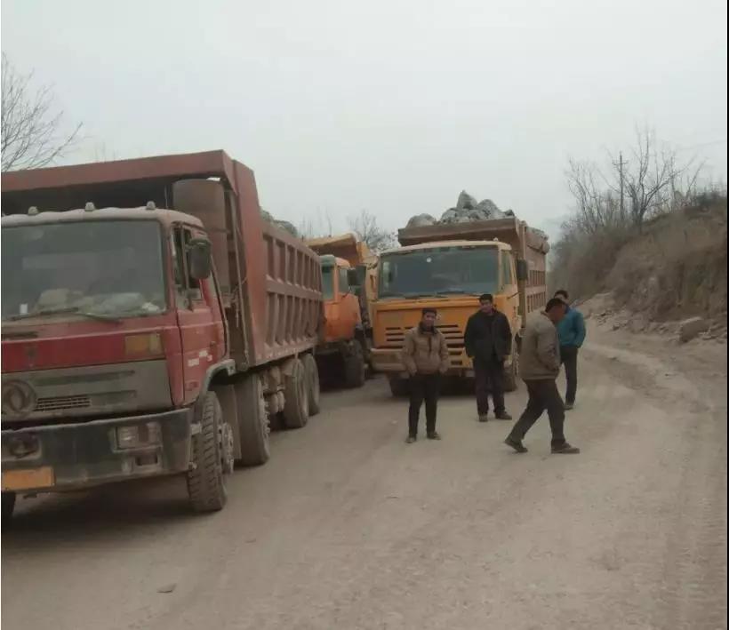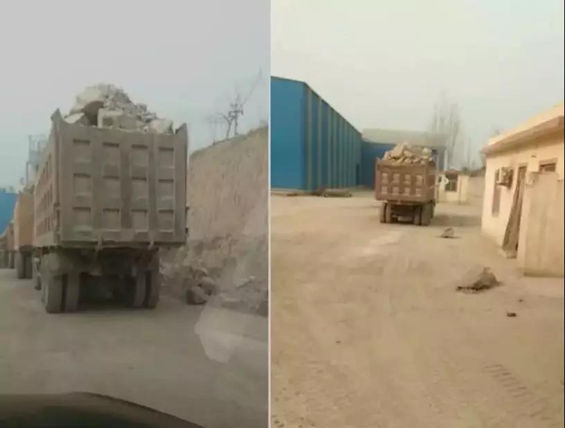 可是山西中條山新型建材有限公司的后門卻是另一道"風景"了,工廠后門,大約有七八輛貨車橫七豎八的停放在門口準備進廠運送原料,全部車輛裝滿石頭,不蓋篷布,這些車輛既沒有牌照、還加高超載,貨廂上的石頭隨時有掉落的危險,對人身安全造成了嚴重的威脅。