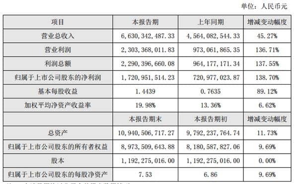 公司水泥銷(xiāo)售價(jià)格較上年同期上升了26.52%,受原材料價(jià)格上漲的影響,水泥銷(xiāo)售成本同比上升了6.13%,水泥銷(xiāo)售價(jià)格的上漲高于成本的上升使得綜合毛利率提高了10.78個(gè)百分點(diǎn)。受此疊加影響,報(bào)告期公司營(yíng)業(yè)利潤(rùn)、利潤(rùn)總額和歸屬于上市公司股東的凈利潤(rùn)實(shí)現(xiàn)了大幅度的增長(zhǎng),并使得報(bào)告期加權(quán)平均凈資產(chǎn)收益率同比上升了6.62個(gè)百分點(diǎn)。