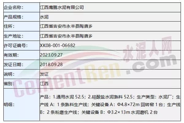 從質檢部局生產許可主辦公室相關數據可見,貴州茂鑫水泥有限責任公司,已經在2018年12月初取得了生產許可證。江西鷹鵬水泥有限公司已經在2018年九月下旬取得了生產許可證。云南景谷紅獅水泥也進入了建設新階段。雖倍受爭議,雖幾經風波但終歸獲得認可。尤其是永州紅獅在湖南區(qū)域成為家喻戶曉的知名企業(yè)。