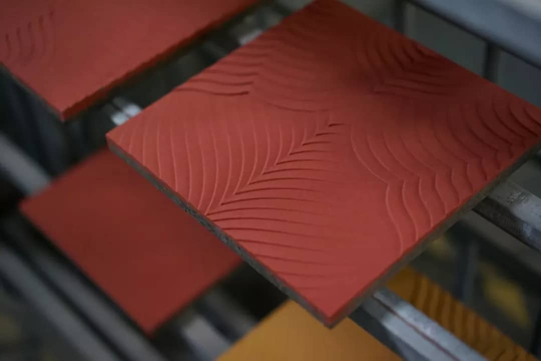 設(shè)計(jì)上?,F(xiàn)場(chǎng)將正式展示NAOO1O款的水泥立體花磚拼貼效果,以僧袍的色彩——橘紅為主色應(yīng)用。蔣晟的日常工作是為佛造型,他以建筑的視角思考水泥立體花磚的設(shè)計(jì),將佛像的元素抽象、簡(jiǎn)化,為水泥花磚賦予新的美學(xué)。