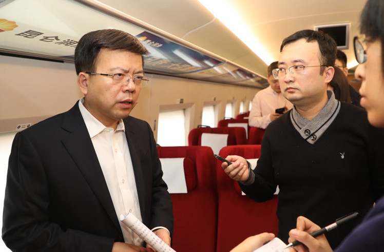 住陜?nèi)珖?guó)政協(xié)委員張義光在赴京的列車上接受記者采訪。