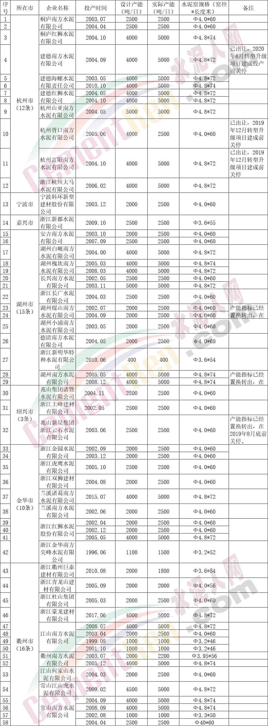 另外,2010年10月投產(chǎn)的建德海螺水泥有限責(zé)任公司、2015年7月投產(chǎn)的蘭溪諸葛南方水泥有限公司以及2017年6月投產(chǎn)的浙江豪龍建材有限公司三條熟料生產(chǎn)線均為設(shè)計(jì)產(chǎn)能4000t/d,實(shí)際產(chǎn)能5000t/d。
