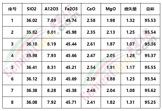 留言中計算結(jié)果報出:編號12345 生料CaO:44.54
