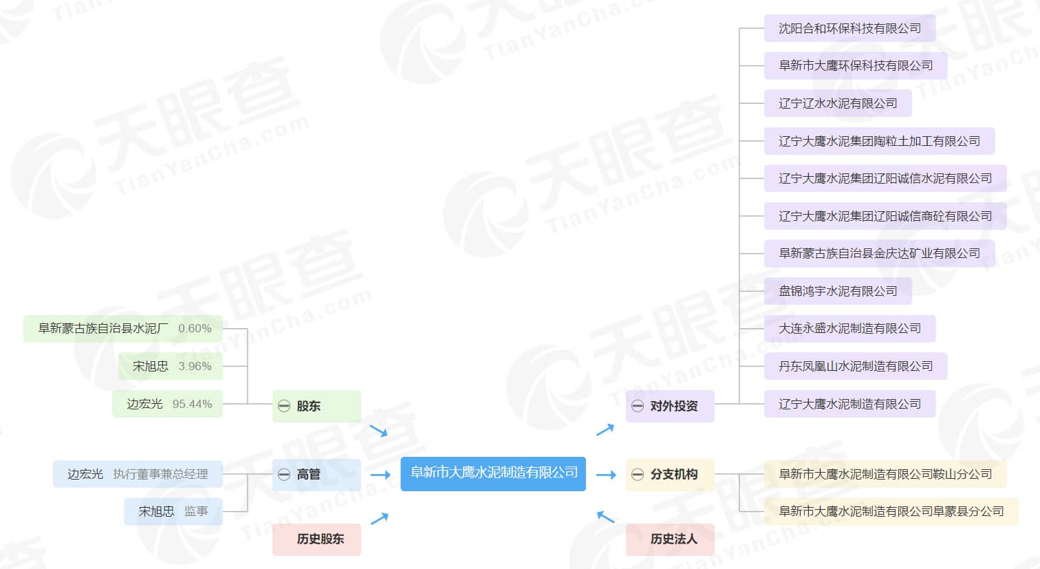 工商注冊(cè)信息顯示,阜新市大鷹水泥制造有限公司實(shí)際控制人為邊宏光。其在遼寧省內(nèi)還有投資入股多條熟料生產(chǎn)線。