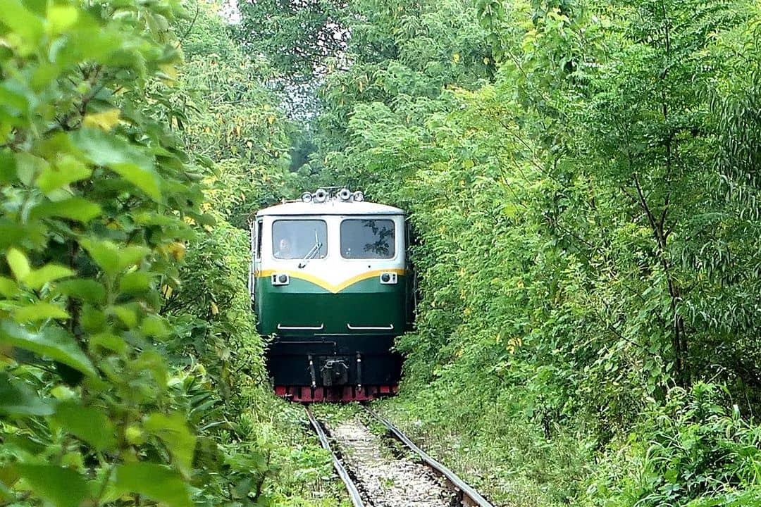正是因?yàn)槊刻?對(duì)的列車(chē)從這里經(jīng)過(guò),它們也讓這些植物構(gòu)成了一個(gè)天然的綠色隧道,包絡(luò)著“小火車(chē)”的機(jī)車(chē)車(chē)輛限界。(若不是有列車(chē)定期通過(guò),綠樹(shù)青草也許會(huì)徹底掩蓋線路)