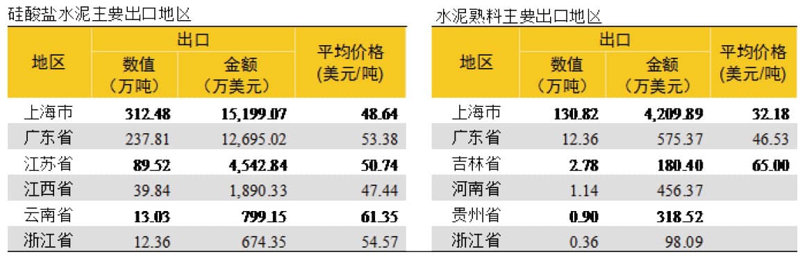 3、水泥出口地集中在上海、廣東和江蘇地區(qū)