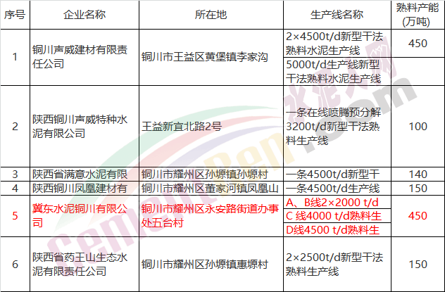 銅川市水泥熟料生產(chǎn)企業(yè)名單