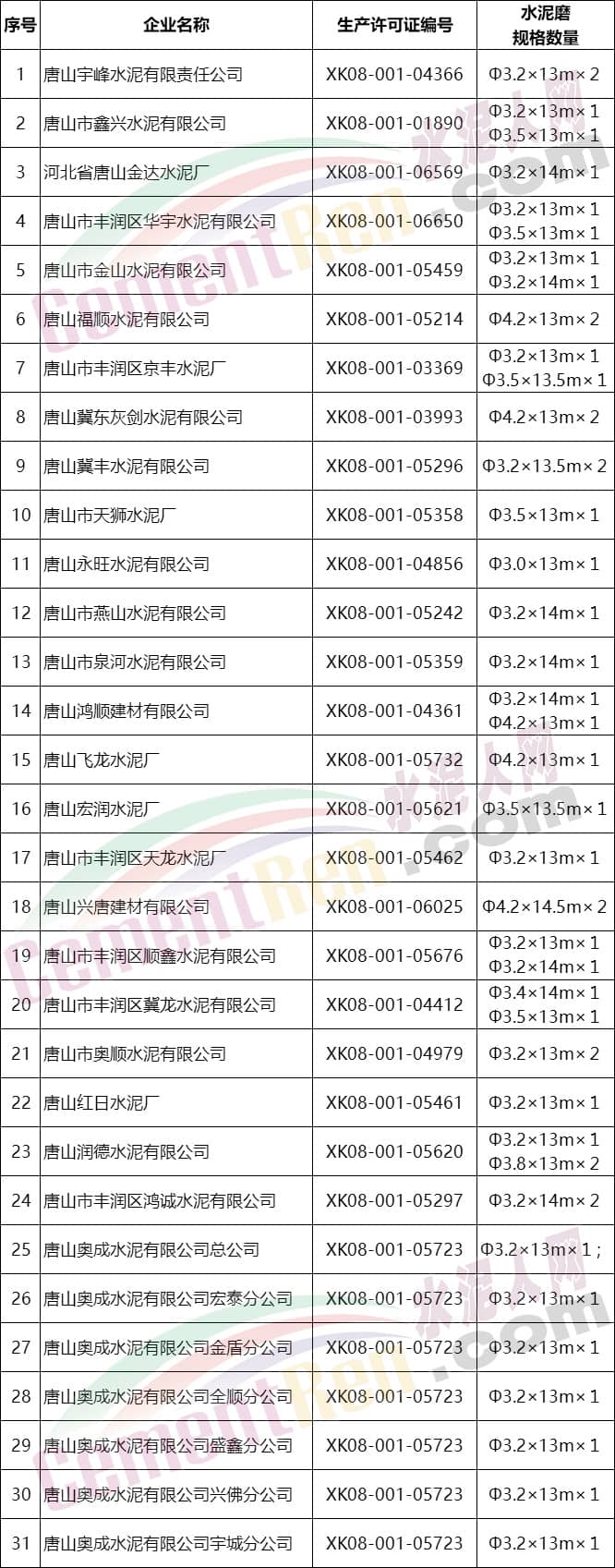 唐山市豐潤(rùn)區(qū)水泥粉磨站企業(yè)名錄