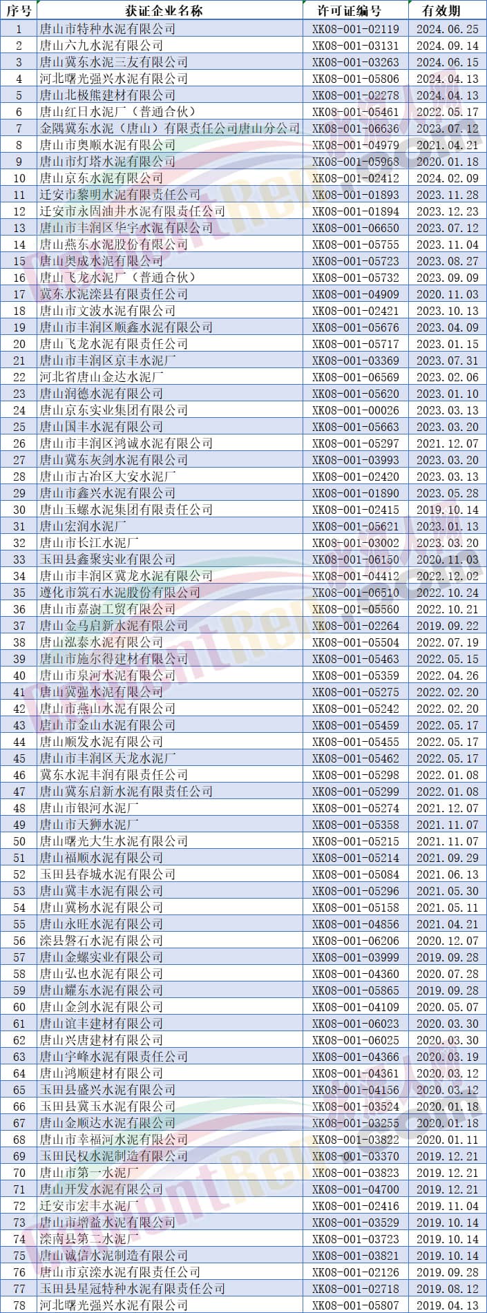 唐山市豐潤(rùn)區(qū)水泥廠(chǎng)、熟料廠(chǎng)名單