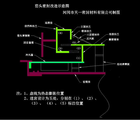 據(jù)介紹,這是河北滄州市天一密封有限公司(以下簡稱“天一密封”)研制的迷宮套筒式窯頭密封方案,內(nèi)設“七道迷宮”。窯頭密封很多施工企業(yè)都可以做,但是“七道迷宮”式密封還是頭一次聽說。