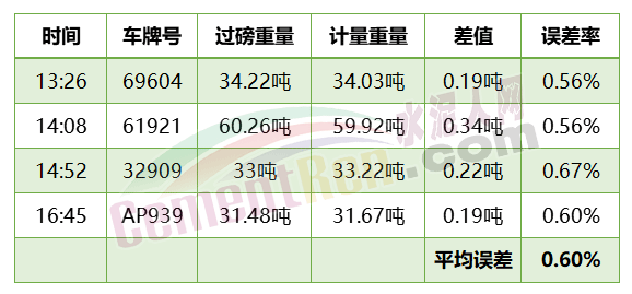 以上隨機(jī)抽取的車輛比對(duì)結(jié)果全部合格,且誤差較小,誤差全部小于<1%,平均誤差僅0.6%。